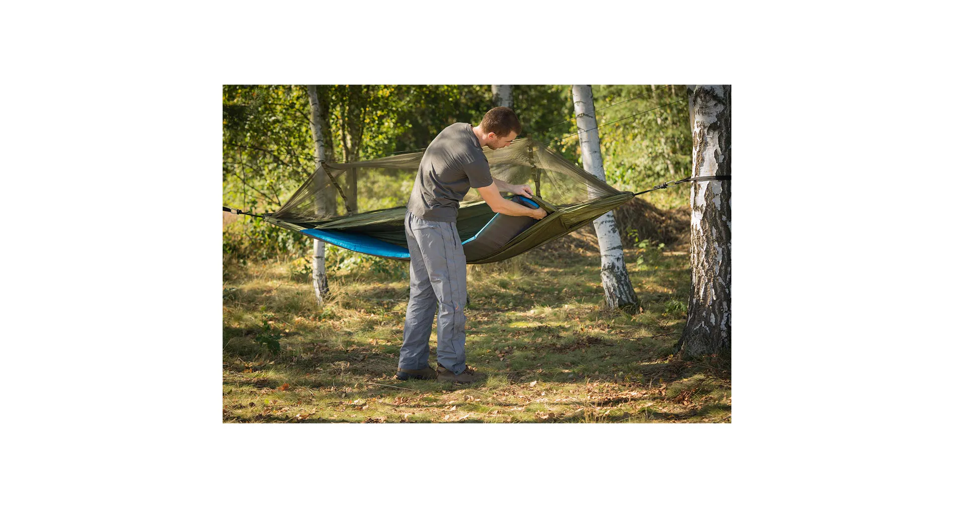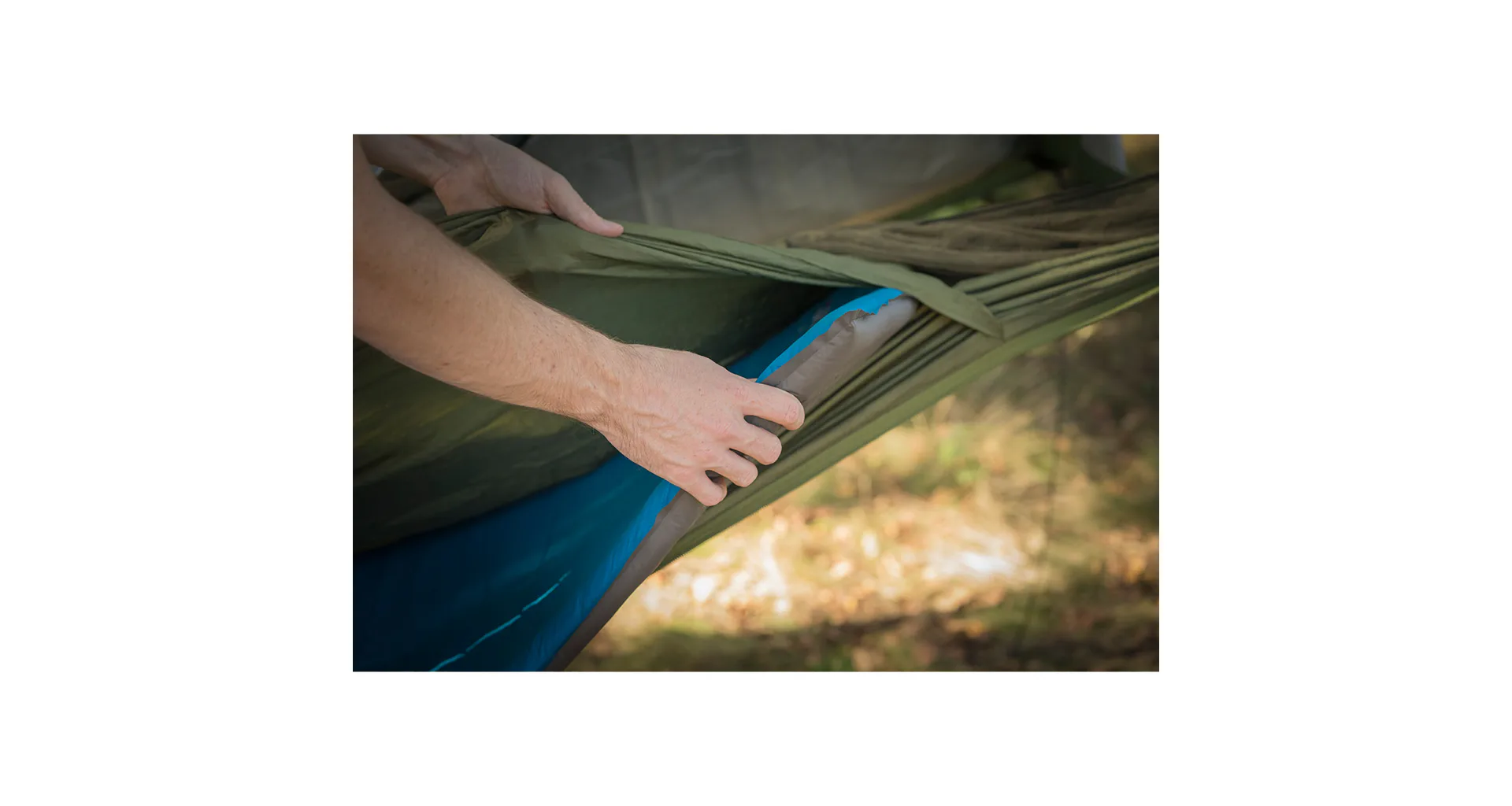 Hamaka má dvojité dno, které vytváří kapsu na karimatku. Karimatka je díky tomu uzavřena na jednom místě a neposouvá se, když zalézáte do spacáku a uléháte do hamaky.