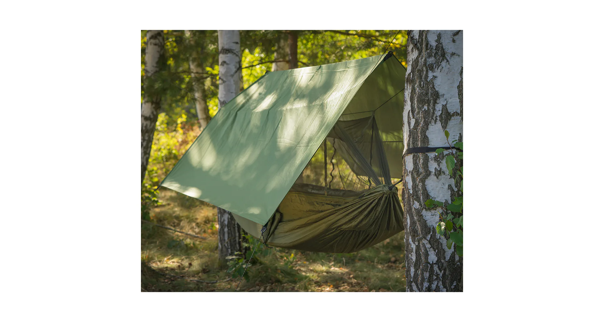 Stříšku (tropiko) je možné natáhnout nad hamaku buď jako stan A, nebo přes úhlopříčku, takže vytvoří kosočtverec. Obě varianty vás dostatečně ochrání před případným deštěm. Odolnost proti vodě (vodní sloupec): 2000 mm H2O