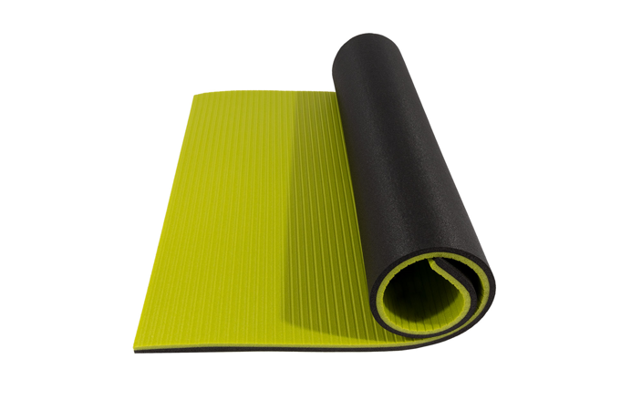 Kratší verze karimatky ze super-elastického materiálu pro cvičení a rehabilitaci. Pohodlná a příjemná podložka, která netlačí pod zády, kyčlemi a dalšími částmi těla, které jsou při cvičení na zemi namáhány. Díky speciálnímu materiálu, který je více houževnatý a připomíná materiál EVA, karimatka méně klouže po podlaze a při zatížení je více poddajná. Materiál je velice odolný proti poškození a opotřebení. Ideální podložka do domácí posilovny, ale také do tělocvičen a fitness center.