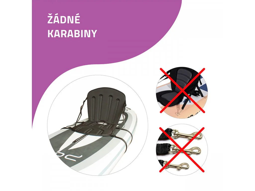 Sedačka pro paddleboard YATE MAXIM deluxe se zvýšeným podsedákem pro vyšší pohodlí. Snadná montáž kamkoliv na prkno. Není potřeba mít paddleboard s očky pro karabiny. Vyztužená záda. Zvýšený podsedák nabízí pohodlnější posez šetrnější ke kyčlím a kolenům.