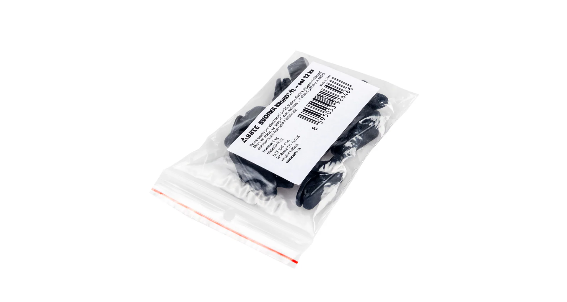 Pevné svorky YATE pro všestranné použití. Mohou sloužit k připevnění náhradní šňůry ke stanu, ke spojení dvou karimatek, k připnutí píšťalky a dalších drobností k oblečení nebo k batohu atd.
