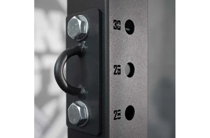 Záchytné oko STRENGTHSYSTEM Universal Loop Attachment je navrženo pro efektivní rozšíření vašich tréninkových možností. Díky kompatibilitě s MRR stojany lze toto příslušenství snadno namontovat do stávajícího vybavení posilovny, což umožňuje připojení různých doplňků, jako jsou odporové gumy, popruhy nebo lana.