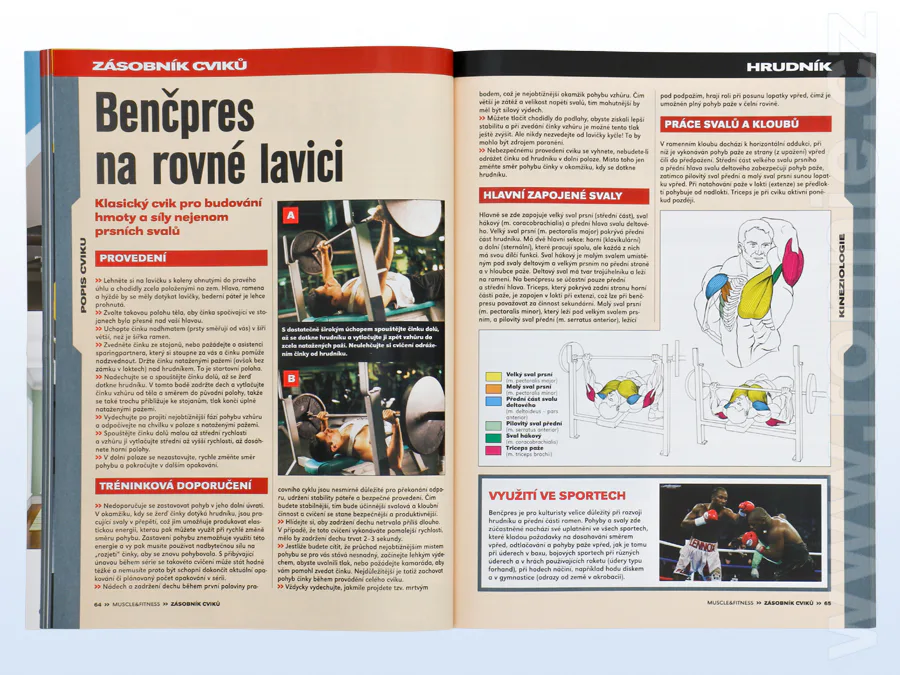 FIT PLUS International Publishing vydal další z řady speciálů: ilustrovaného průvodce posilovacími cviky pro muže a ženy, které jste mohli nacházet v minulosti v populárním seriálu MUSCLE&FITNESS Zásobník cviků - Kineziologie. Tato publikace o více než 160 stránkách přináší popis 72 nejlepších cviků, detailní návody k jejich provádění, vše doplněné fotografiemi a barevnými ilustracemi anatomie těla se znázorněním svalů zapojených do každého pohybu.