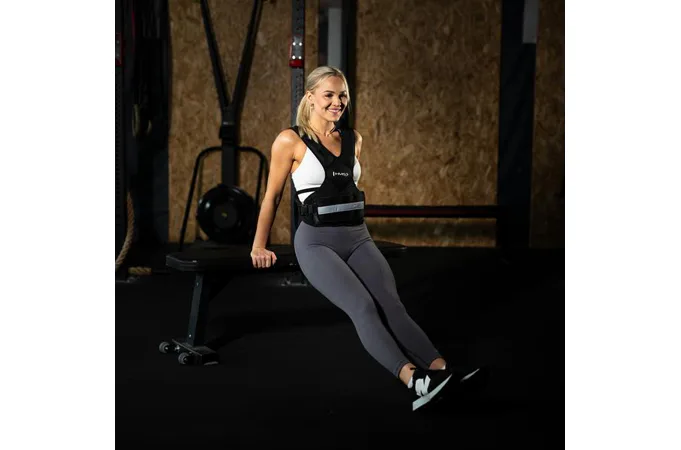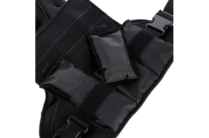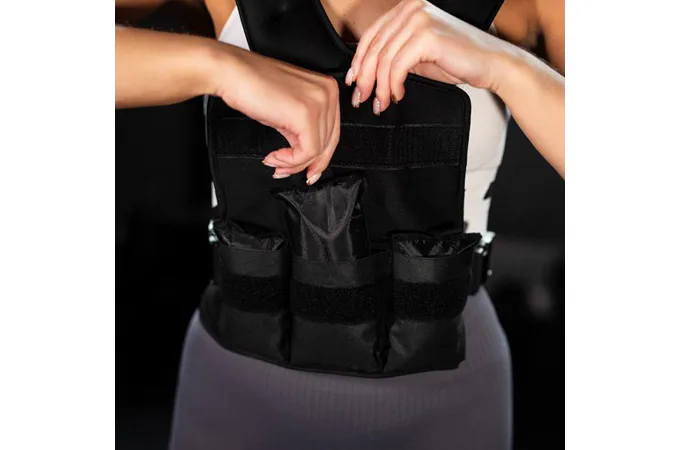 Vybavení bylo navrženo s ohledem na pohodlí uživatele. Regulovatelné popruhy umožňují dokonalé přizpůsobení jakékoliv postavě, a speciální neoprenový materiál je měkký, odolný proti potu a zabraňuje sklouzávání vesty i při intenzivních pohybech. Elastická síťovaná kapsa poskytuje prostor pro uložení telefonu, klíčů nebo peněženky, díky čemuž se trénink stává ještě praktičtějším.
