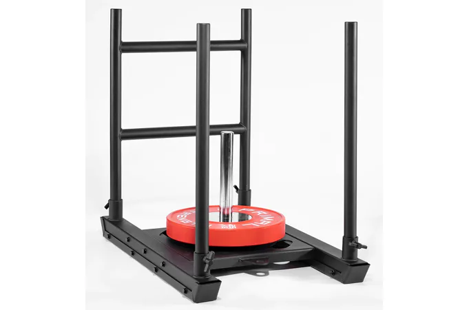 Na Zátěžové saně PRIMAL Power Sled umístíte velmi jednoduše kotouče, díky kterým docílíte vysoké variability zátěže. Správně by se měly použít kotouče olympijské, na které je uprostřed saní připraven trn 50 mm. Lze též využít pouze vlastní váhu saní, která je 35 kg. Saně lze použít téměř na každém povrchu v domácím či komerčním prostředí.