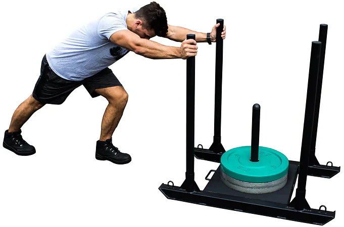 Zátěžové saně STRENGTHSYSTEM POWER SLED jsou vynikajícím pomocníkem pro trénink sprintů, pro posilování zejména nohou, boků a paží. Lze využít s tažnými lany případně využít 4 tyče jako madla a je tedy možné saně tlačit před sebou, případně je táhnout za sebou. Tažná lana pohodlně připevníte k navařeným kovovým okům, které jsou umístěné na obou stranách lyžin. S tažnými lany lze využít i pro přitahování saní k sobě, pro posílení paží.