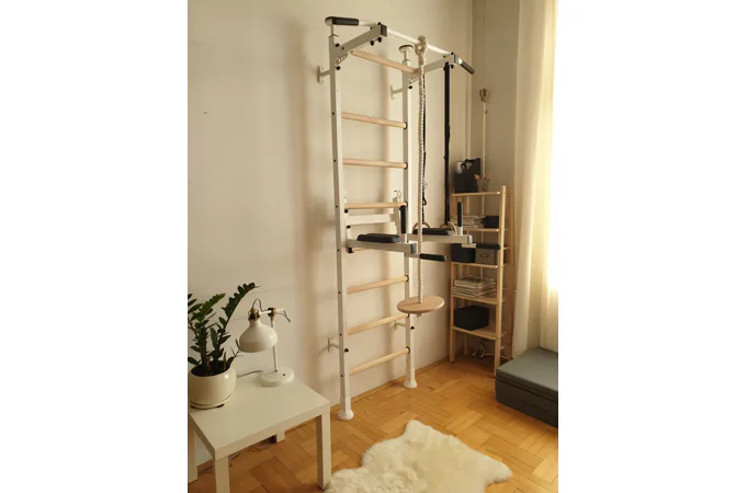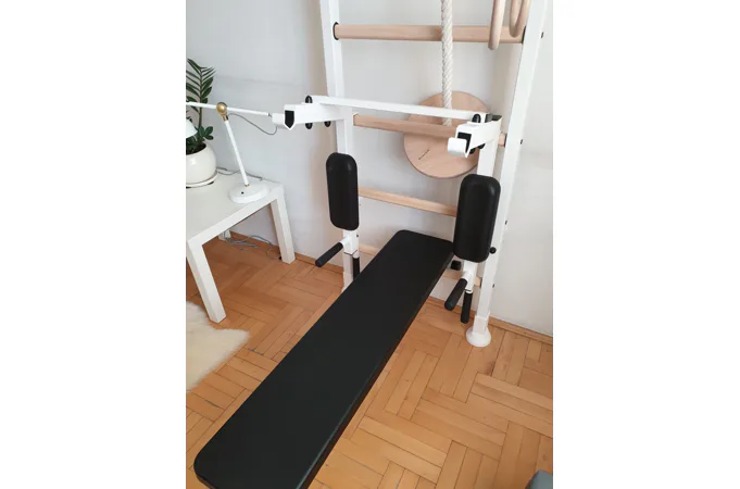 Žebřiny, ani lavice na ilustračních fotografiích nejsou součástí dodávky, ale můžete si je samozřejmě u nás dokoupit.