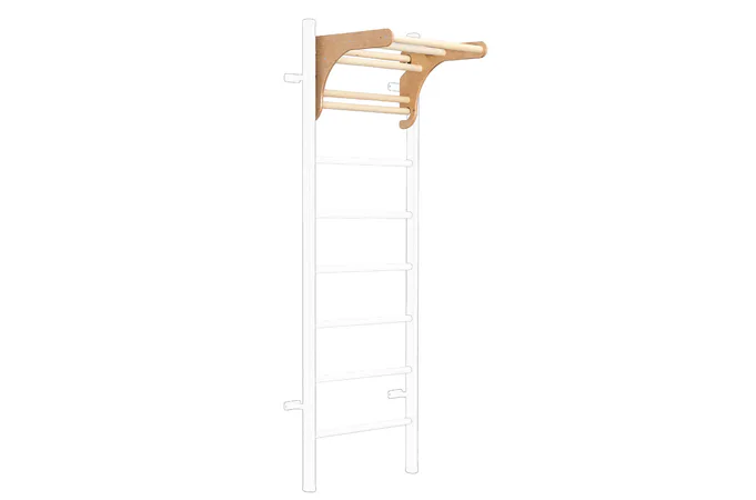 Závěsná hrazda na ribstole BENCHK je vyrobena z kvalitního dřeva. Disponuje celkem čtyřmi příčkami a díky tomu je zaručena její pevnost. Zavěšení na ribstole je velice jednoduché, zvládne to opravdu každý během pár vteřin a bez nutnosti jakéhokoli nářadí. Hrazdu je možné zavěsit na typ žebřin BENCHK Fusion.