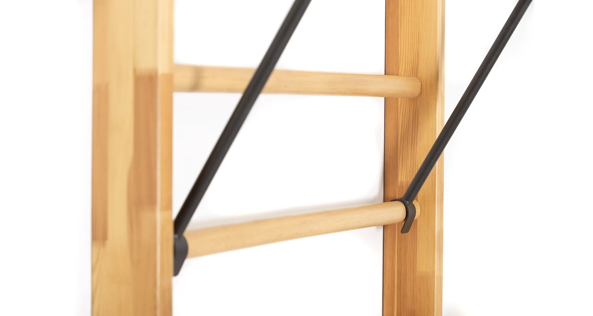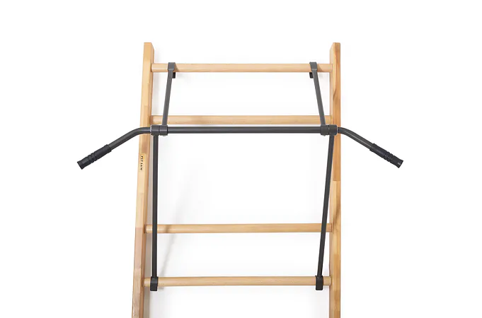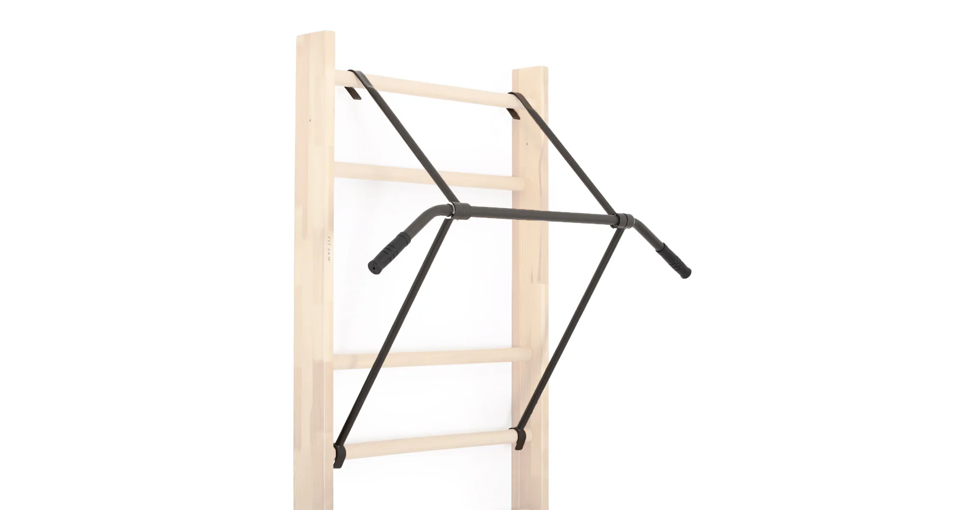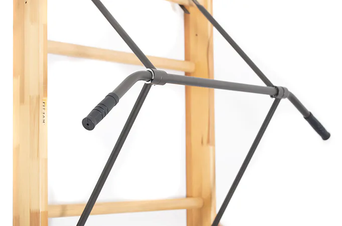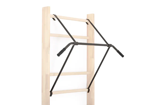 Závěsnou hrazdu VIFITO velmi snadno zavěsíte na ribstol do vámi požadované výšky. K tomu slouží dva šířkově nastavitelné háky, které jednoduše zavěsíte na ribstol. Hrazdu poté zafixujete na žebřinách dvěma podpěrami, které je možné také nastavit dle požadované šířky.
