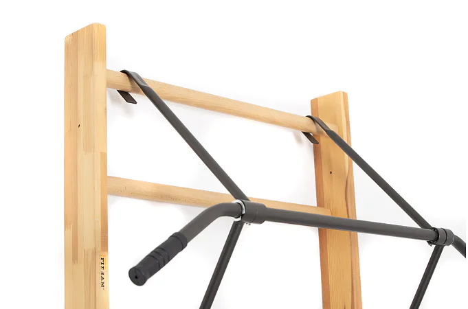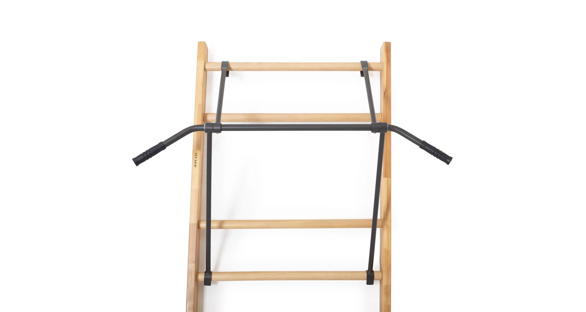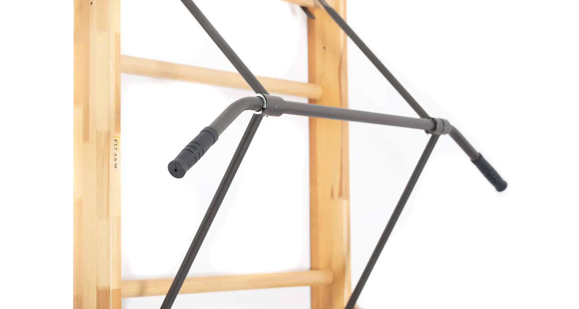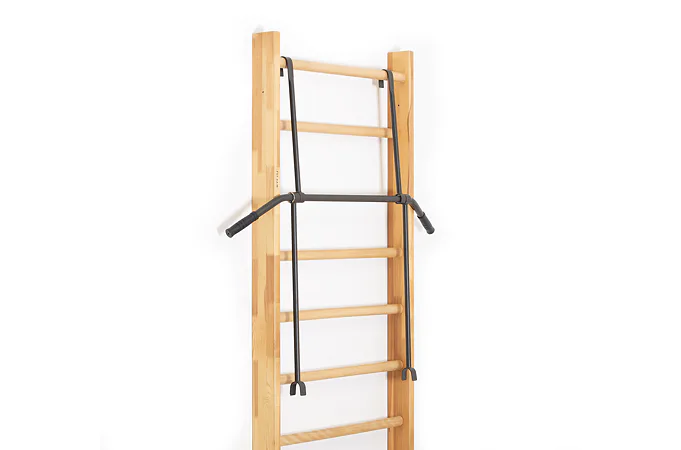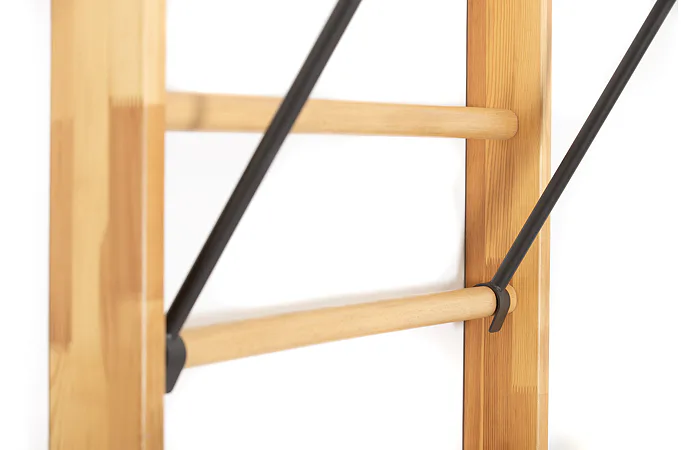 Závěsnou hrazdu VIFITO velmi snadno zavěsíte na ribstol do vámi požadované výšky. K tomu slouží dva šířkově nastavitelné háky, které jednoduše zavěsíte na ribstol. Hrazdu poté zafixujete na žebřinách dvěma podpěrami, které je možné také nastavit dle požadované šířky.