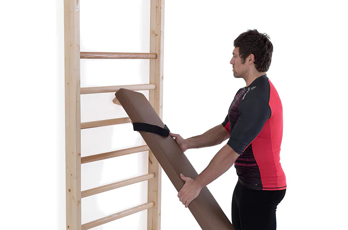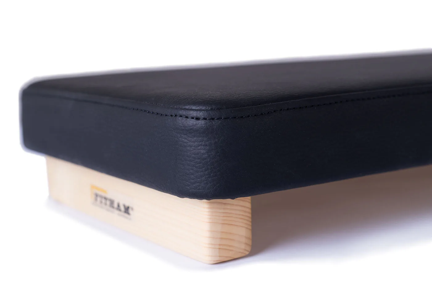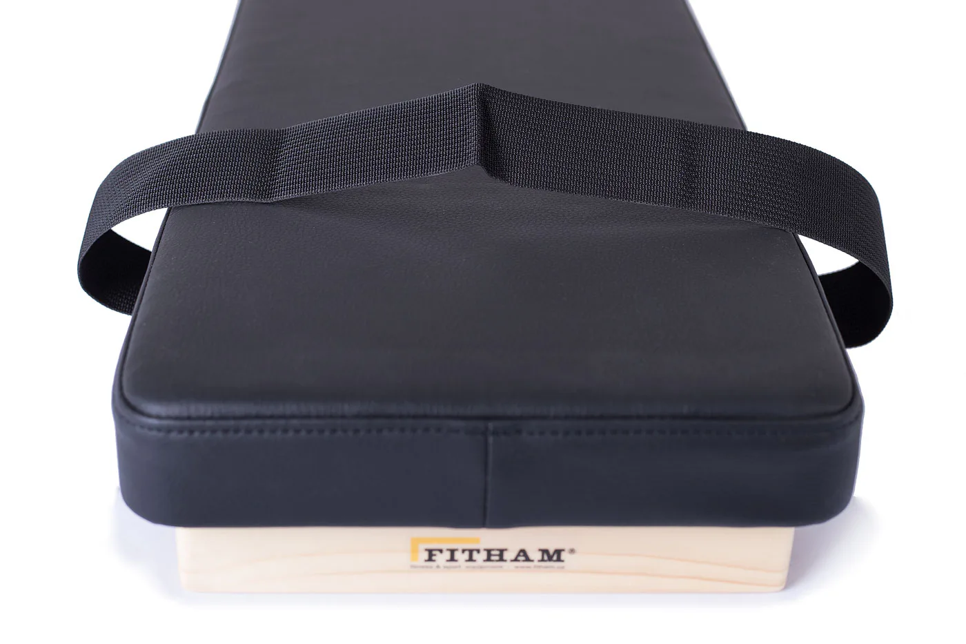 FITHAM Závěsná lavice na ribstole čalouněná má rozměry 190x30 cm. Je jednoduchou pomůckou, která však zásadně rozšiřuje možnosti každých žebřin. Lavice se používá především pro procvičení břišních svalů, díky jednoduché změně sklonu, lze lavici rychle přizpůsobit konkrétním potřebám každého cvičence. Lavici je možné spojit s většinou žebřin či ribstolí. Využití nalezne v domácím , ale i v komerčním provozu.