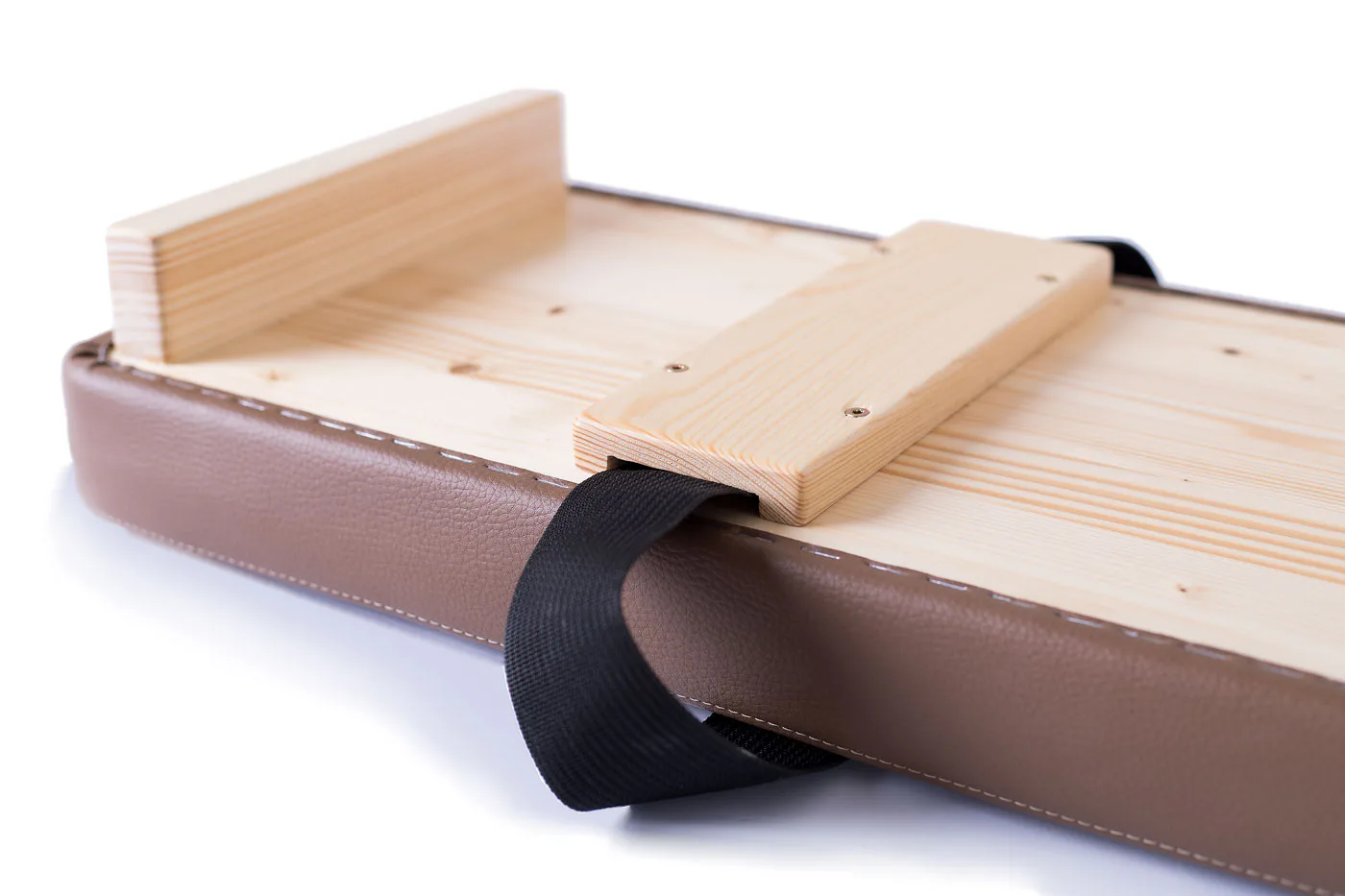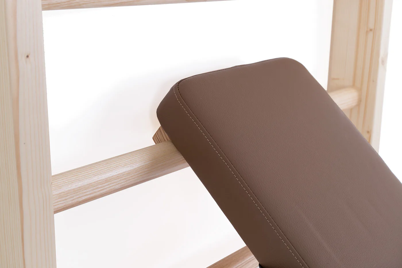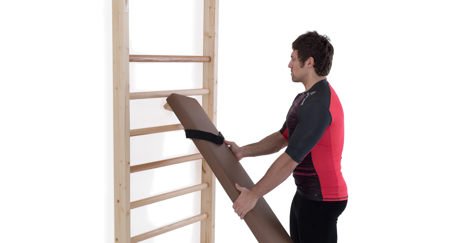 FITHAM Závěsná lavice na ribstole čalouněná má rozměry 190x30 cm. Je jednoduchou pomůckou, která však zásadně rozšiřuje možnosti každých žebřin. Lavice se používá především pro procvičení břišních svalů, díky jednoduché změně sklonu, lze lavici rychle přizpůsobit konkrétním potřebám každého cvičence. Lavici je možné spojit s většinou žebřin či ribstolí. Využití nalezne v domácím , ale i v komerčním provozu.