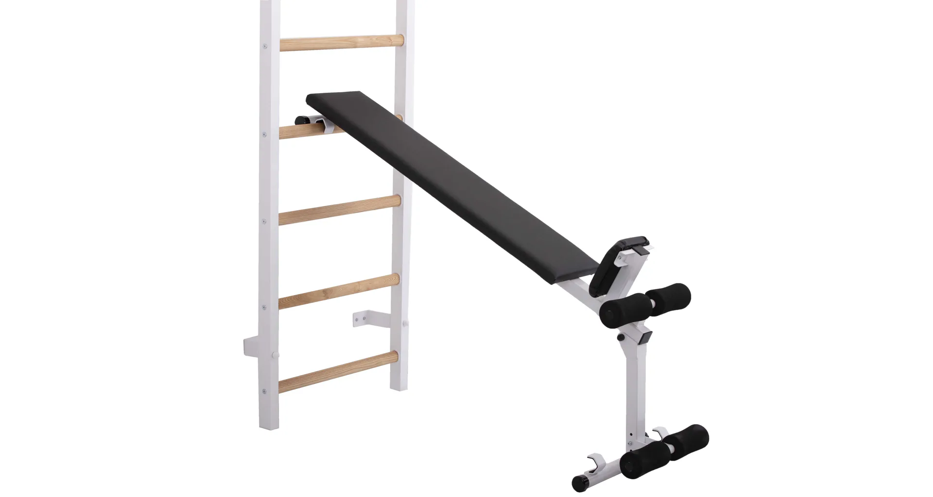Dalším benefitem je odnímatelný sedák, který poskytuje ideální oporu pro tlakové cviky v sedě nebo náklonu. Lavice je vybavena polohovatelnou opěrnou nohou, takže si ji snadno přizpůsobíte svým potřebám. Díky možnosti jejího úplného složení můžete lavici efektivně zavěsit na žebřiny, což šetří místo a zároveň zajišťuje, že budete mít posilovnu vždy uspořádanou.