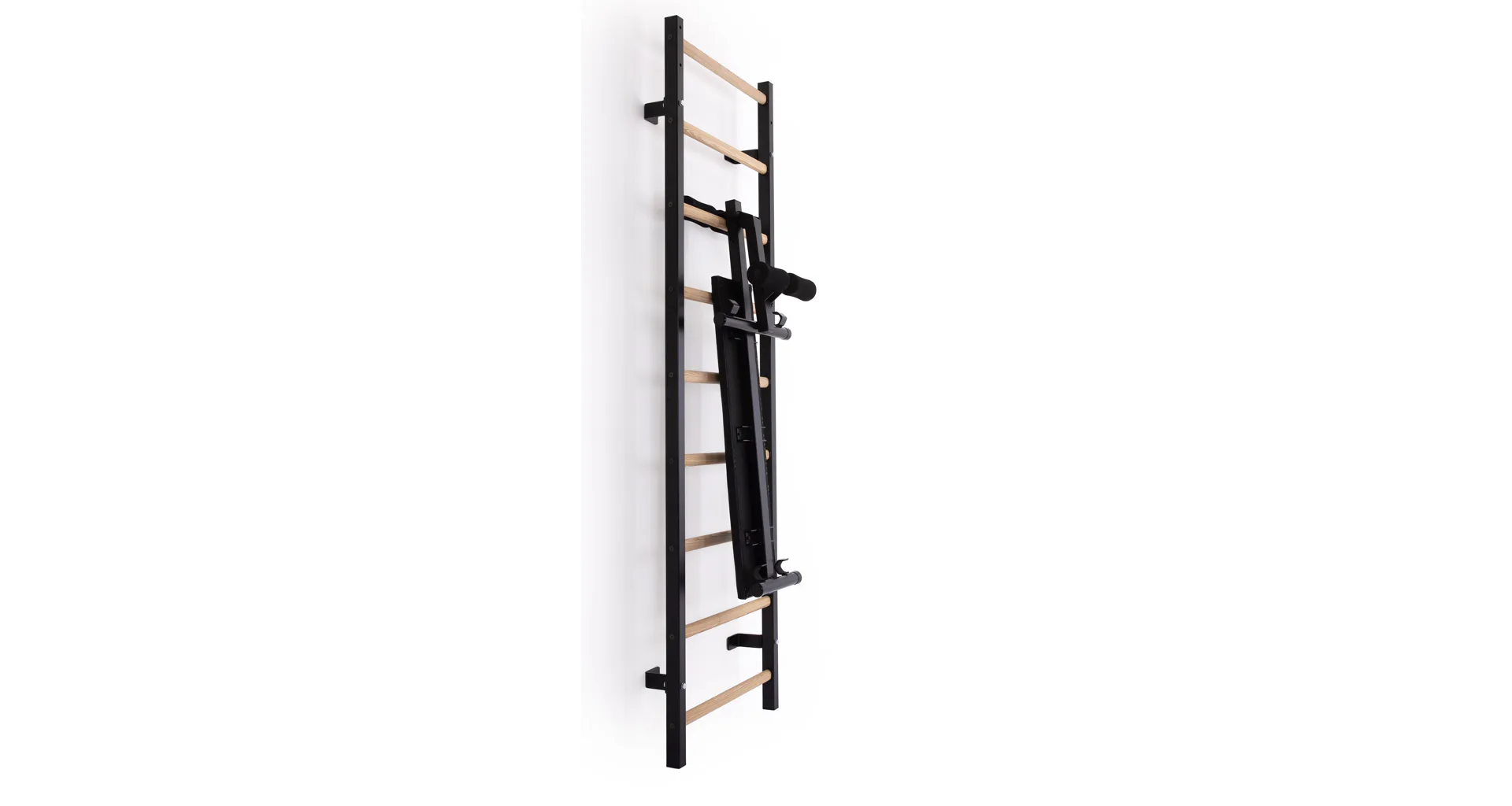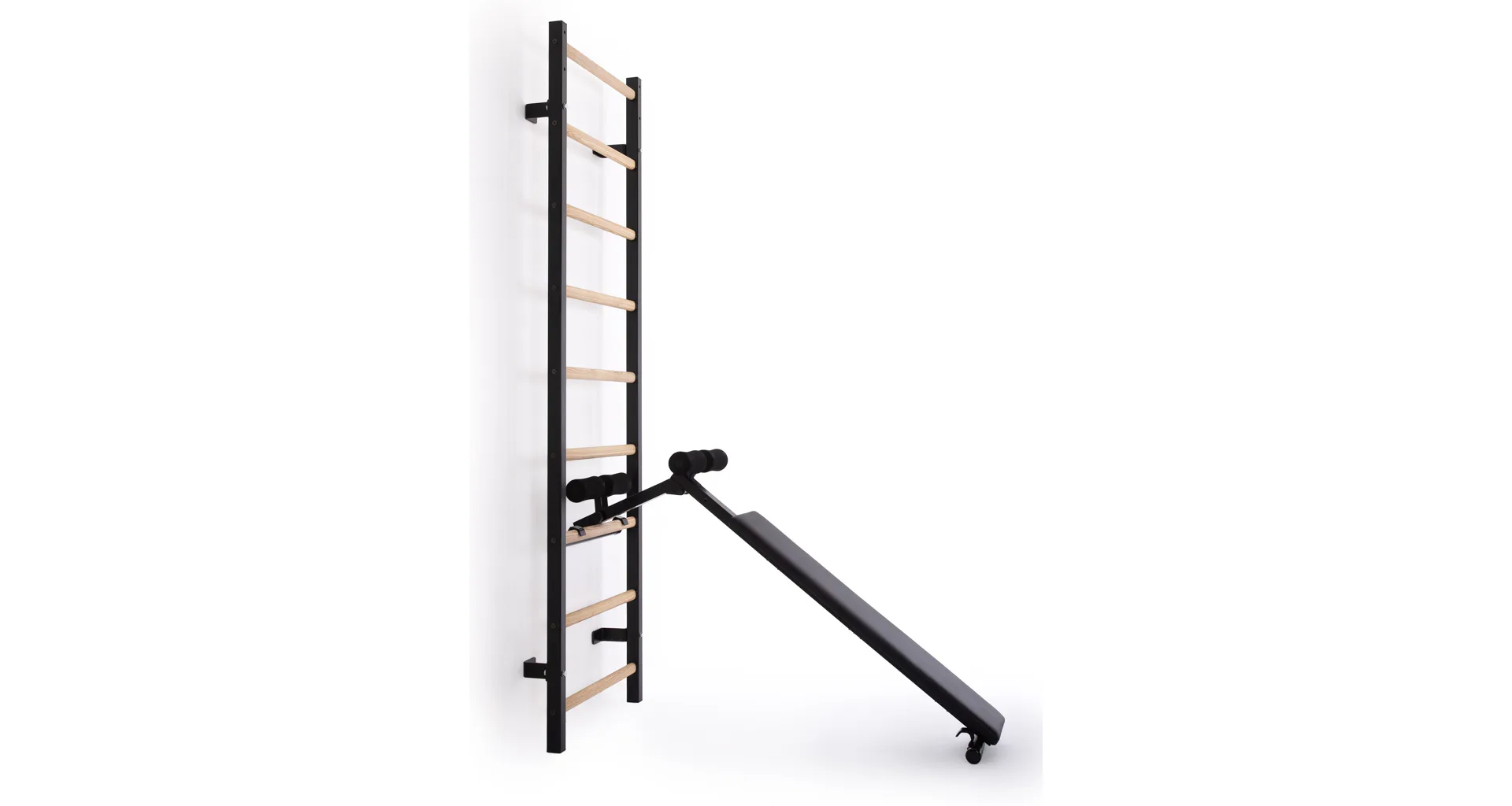Dalším benefitem je odnímatelný sedák, který poskytuje ideální oporu pro tlakové cviky v sedě nebo náklonu. Lavice je vybavena polohovatelnou opěrnou nohou, takže si ji snadno přizpůsobíte svým potřebám. Díky možnosti jejího úplného složení můžete lavici efektivně zavěsit na žebřiny, což šetří místo a zároveň zajišťuje, že budete mít posilovnu vždy uspořádanou.