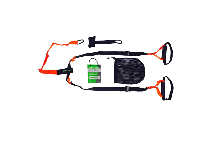 Závěsný systém TUNTURI SUSPENSION TRAINER je efektivní nástroj pro domácí posilování v podobě popruhů pro trénink kdekoliv. Jako odpor používáte váhu vlastního těla a různými variacemi/polohami při cvicích regulujete obtížnost cvičení. Intenzitu lze zvýšit či snížit změnou postoje cvičence oproti závěsnému bodu. Je neuvěřitelné jak posunutí těla o pouhých pár centimetrů změní intenzitu prováděného prvku. V každý okamžik či po každém opakování si lze intenzitu velmi snadno přenastavit. Čím jsme níže pod závěsným bodem, tím se intenzita zvyšuje a naopak. Nejlepší intenzita je taková, abychom vnímali, že posledních pár opakování je prováděno téměř do úplného vyčerpání svalové síly.