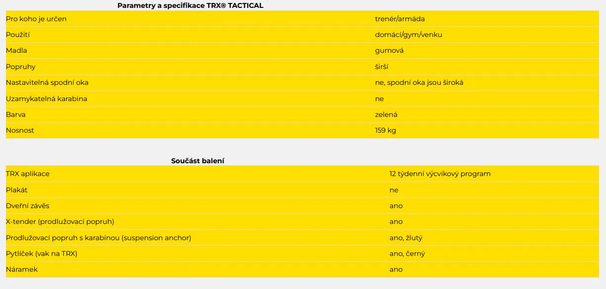 Verze TRX® TACTICAL GYM je vyrobená do army stylu a extrémních podmínek, cvičit s ní můžete také doma,nebo v posilovně. Má gumová madla pro lepší a stabilnější úchop.