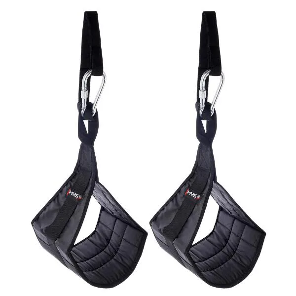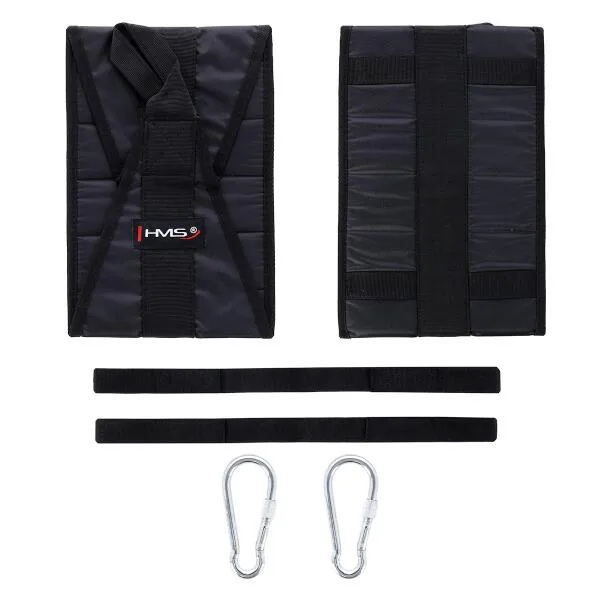Arm Hanger HMS F4439 jsou závěsné rukávy, kteréí usnadňují trénink břišních svalů. Dodané dva rukávy pomocí karabiny zavěsíte na libovolnou tyč, poté jen provlečete paže rukávy a zahájíte trénink. Použité, kvalitní materiály jsou zárukou dlouhé životnosti. Nosnost 2 rukávů je až 100 kilogramů.
