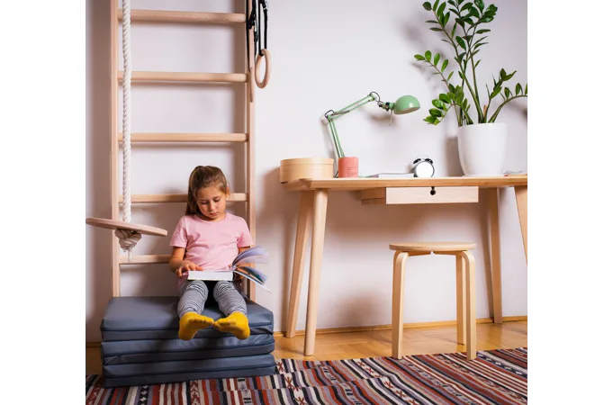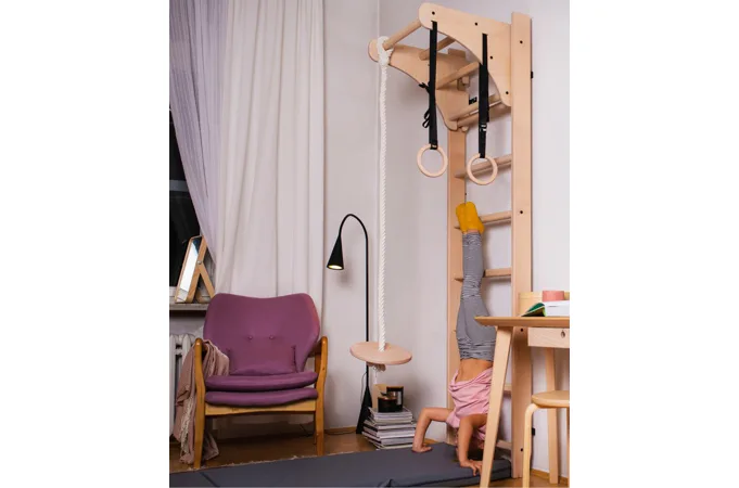 Žebřiny jsou nenáročné na prostor a vejdou se do jakéhokoli dětského pokoje. Rozměry jsou (š x v) 67 x 220 cm a potřebný prostor pro instalaci je minimálně 230 cm.