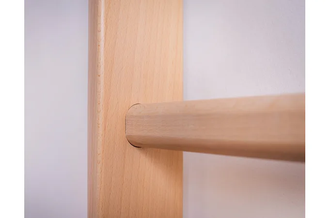 Základním materiálem používaným při výrobě žebřin je masivní přírodní bukové dřevo, které prošlo důkladným zpracováním a broušením. Oválné příčky s profilem 30 x 40 mm poskytují dokonalý úchop. Dřevo je ručně napuštěno olejem a nehrozí tak loupání laku.