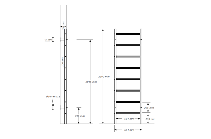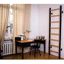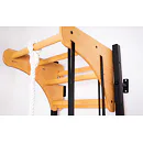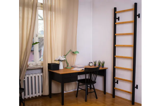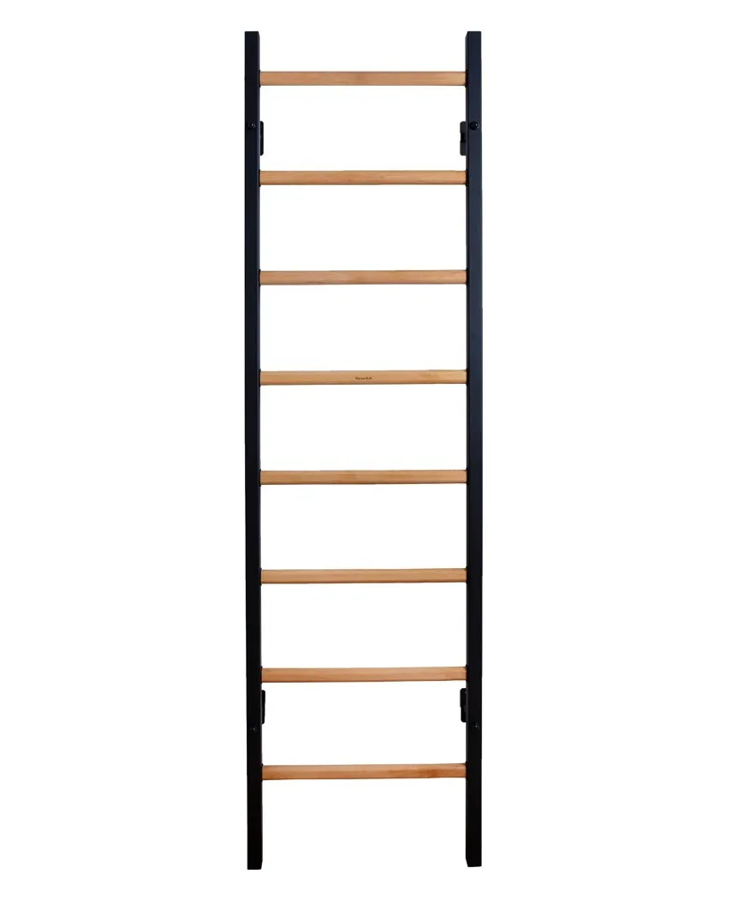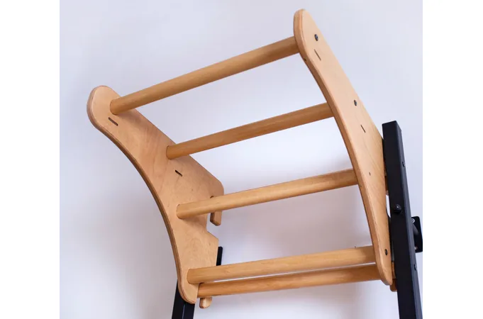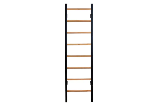 Konstrukce je vyrobena z odolného kovu a příčky z bukového dřeva. Oválné příčky s profilem 30 x 40 mm poskytují dokonalý úchop. Dřevo je ručně napuštěno olejem a nehrozí tak loupání laku. Žebřiny jsou nenáročné na prostor a vejdou se do jakékoli místnosti.