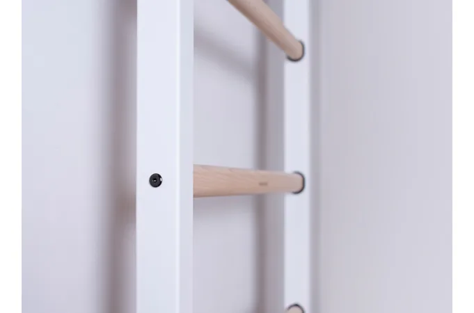 Masivní konstrukce je vyrobena z odolného kovu a příčky z bukového dřeva. Oválné příčky s profilem 30 x 40 mm poskytují dokonalý úchop. Dřevo je ručně napuštěno olejem a nehrozí tak loupání laku. Žebřiny jsou nenáročné na prostor a vejdou se do jakékoli místnosti.