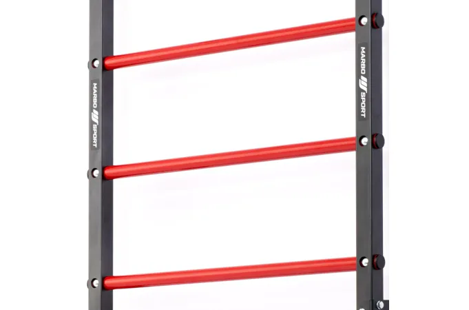 Žebřiny Marbo Sport MH-U204 disponují 10-ti příčkami o průměru 30 mm a jako první firma na trhu přichází s řešením, kdy se každá příčka ke konstrukci připevňuje šroubem z čelní strany. Toto konstrukční řešení eliminuje protáčení příček a zvyšuje komfort během tréninku