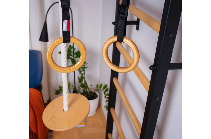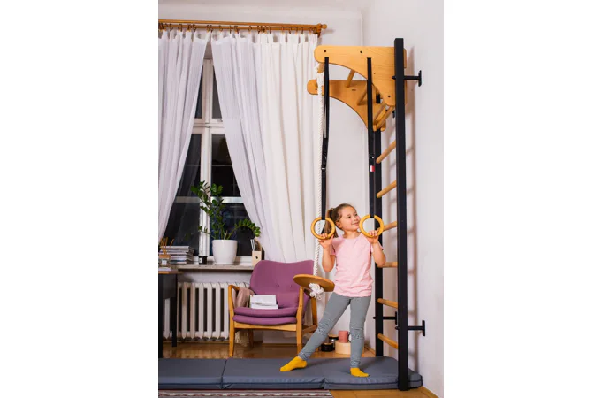 Žebřiny pro děti BenchK 212B s rozměry 230 x 67 cm jsou navrženy tak, aby motivovali nejmladší sportovce k aktivitě. Díky speciálním doplňkům, jako jsou gymnastické kruhy nebo lano s houpačkou, je možné trénovat děti formou zábavných her.