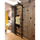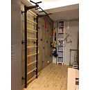 Kovová konstrukce žebřin je vyrobena z profilu 50 x 40 mm o tloušťce 2 mm. Oválné příčky z bukového dřeva s profilem 30 x 40 mm poskytují dokonalý úchop. Dřevo je ručně napuštěno olejem a nehrozí tak loupání laku. Hrazda o průměru 27,2 mm s protiskluzovými madly nabízí celkem šest různých úchopů.