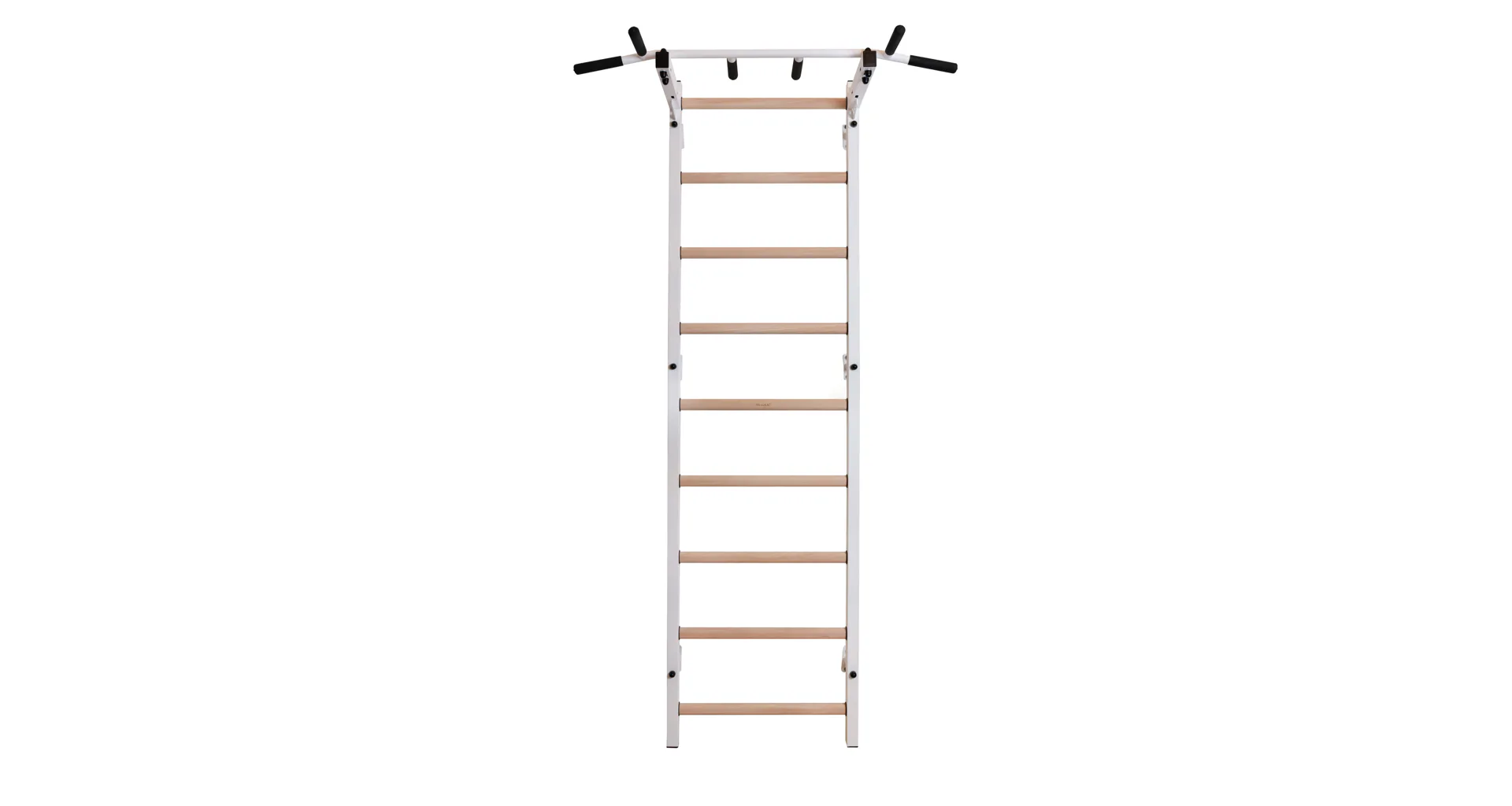 Kovová konstrukce žebřin je vyrobena z profilu 50 x 40 mm o tloušťce 2 mm. Oválné příčky z bukového dřeva s profilem 30 x 40 mm poskytují dokonalý úchop. Dřevo je ručně napuštěno olejem a nehrozí tak loupání laku. Hrazda o průměru 27,2 mm s protiskluzovými madly nabízí celkem šest různých úchopů.