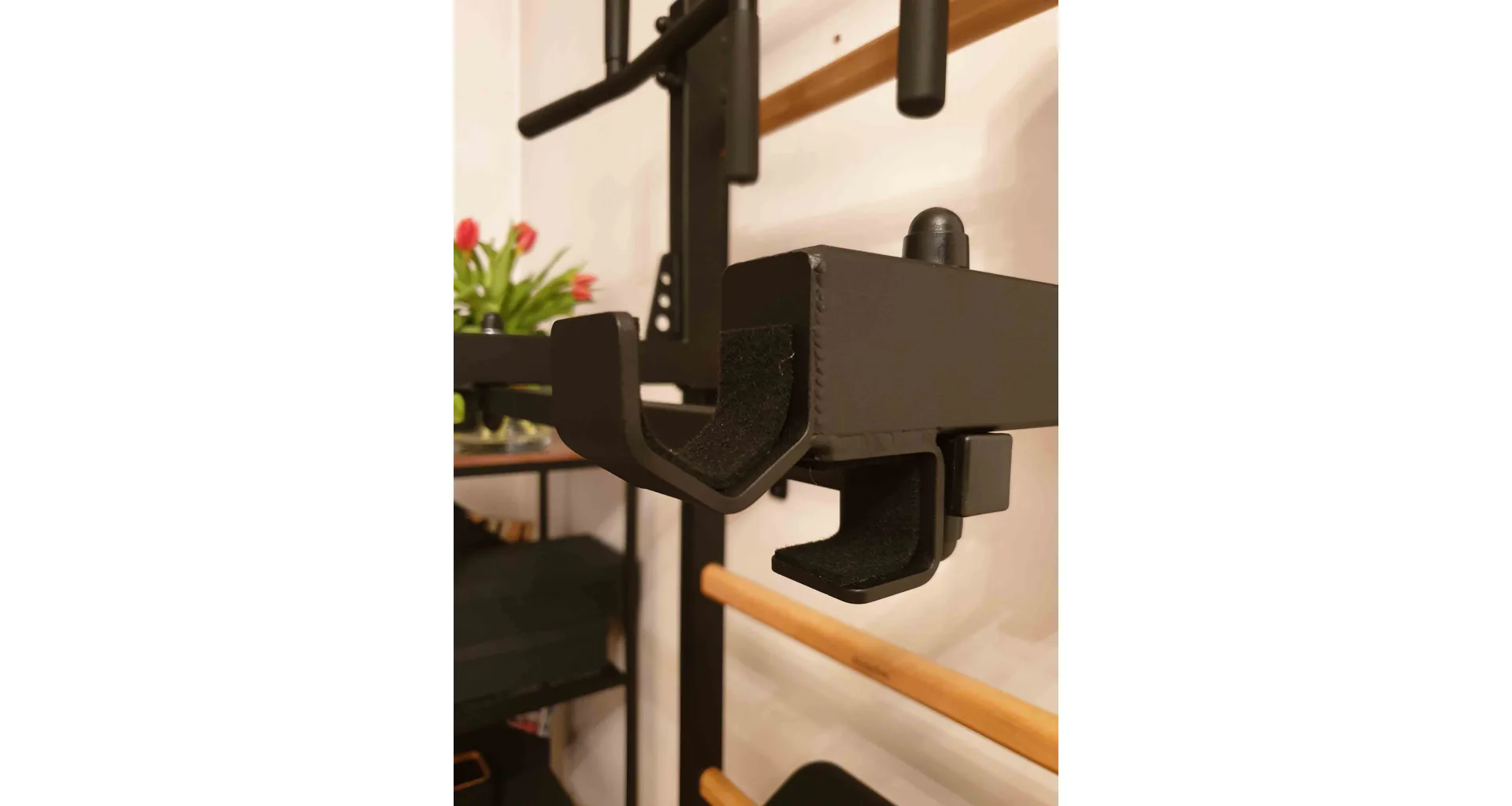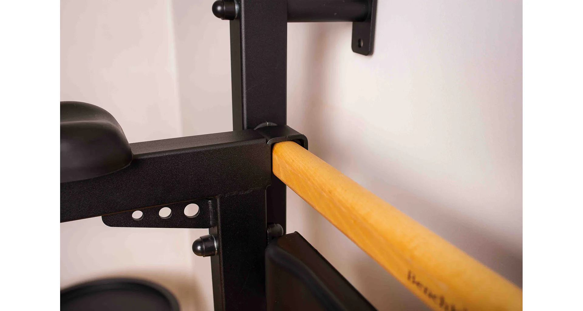 Hrazda o průměru 27,2 mm s protiskluzovými madly nabízí celkem šest různých úchopů a odkládací držáky na činku, díky kterým můžete jet v kombinaci s lavičkou například Bench-press. Bradla jsou připevněna ke 4 háčkům o tloušťce 4 mm s plátěnou podložkou a můžete je zavěsit za jakoukoliv příčku. Lavice má kvalitní čalounění z polyuretanu, které zaručuje maximální pohodlí a dlouhou životnost. Kovová konstrukce lavice je vyrobena z profilu 50 x 40 mm o tloušťce 2 mm.