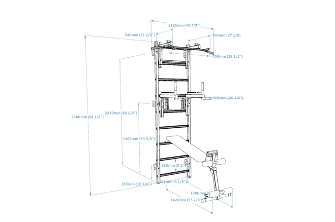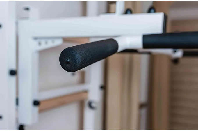Hrazda o průměru 27,2 mm s protiskluzovými madly nabízí celkem šest různých úchopů a odkládací držáky na činku, díky kterým můžete jet v kombinaci s lavičkou například Bench-press. Bradla jsou připevněna ke 4 háčkům o tloušťce 4 mm s plátěnou podložkou a můžete je zavěsit za jakoukoliv příčku. Lavice má kvalitní čalounění z polyuretanu, které zaručuje maximální pohodlí a dlouhou životnost. Kovová konstrukce lavice je vyrobena z profilu 50 x 40 mm o tloušťce 2 mm.