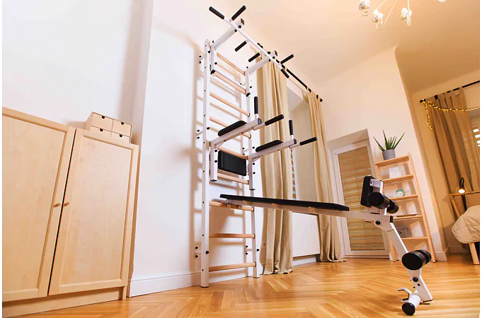 Žebřiny jsou nenáročné na prostor a vejdou se takřka do jakékoli místnosti.