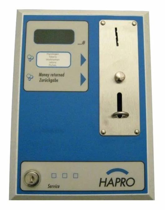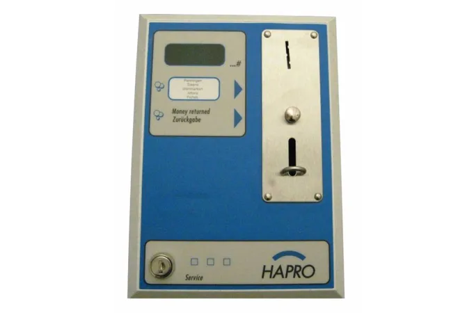 Žetonový automat HAPRO Paymatic AD2400 se vyznačuje jednoduchou konstrukcí, bezporuchovým a spolehlivým provozem. Po vhození patřičného počtu žetonů se solárium aktivuje na stanovený čas (např. jeden žeton odpovídá 5 minutám opalování) a na displeji ovladače potom v průběhu opalování vidíte zbývající čas do vypnutí solária.