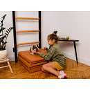 Žíněnka k žebřinám BenchK - Hnědá se skládá ze 3 měkkých čtvercových matrací spojených dohromady. Matrace je potažena ekologickou kůží v hnědé barvě a je vhodná pro všechna gymnastická cvičení. Poskytuje bezpečnost během cvičení na ribstolích a lze jej také použít jako sedačku.